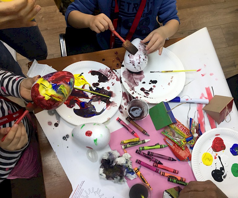On Tuesday morning, Marta, Matt and I hosted an art workshop at Shelter's hub in Dalston. The workshop was for people of all ages and abilities (babies, toddlers, teenagers, parents and the elderly) that have been affected in some way by homelessness. Loads of people turned up and they all seemed really happy and relaxed. Things got pretty messy by the end: we were all covered in paint, had accidentally ruined a few chairs and squashed lots of crisps into the floor…