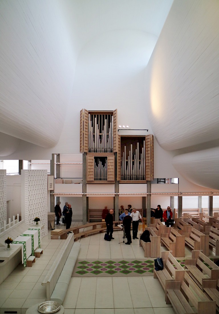 Jensen-Klint’s expressionist Grundtvig's Church (above) stopped us in our tracks with its six million soaring uncut yellow fair-faced bricks. However, nothing prepared us for the contrast between the banal, almost barn-like, exterior of Utzon's Bagsværd Church (below) and the poetic tranquillity of its interior. The contrast was matched by the tension between its meticulously rationalised top-lit side aisles traversed by its extraordinarily unique concrete shell. Cited by architectural historian Kenneth Frampton as transcending universal technique and specific place form, it is the ultimate rendition of a church in a highly secular age.