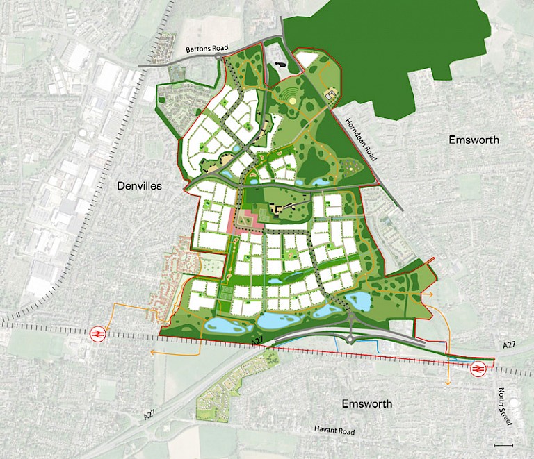 Last week we ran the second of our design charrettes for the residents of Emsworth and Denvilles in Havant, Hampshire. The emerging masterplan for 2,200 homes on a green field site situated between the South Downs and Chichester Harbour has, as you can imagine, provided some interesting debate. With a new link road to the A27, significant wetland areas, a linear park, new woodland and an amphitheatre, the emerging proposals were discussed at length. We ran two workshop sessions with around 100 people attending. The principle of development seems to be have been embraced by the locals, with our challenge now being to ensure the quality in the delivery.