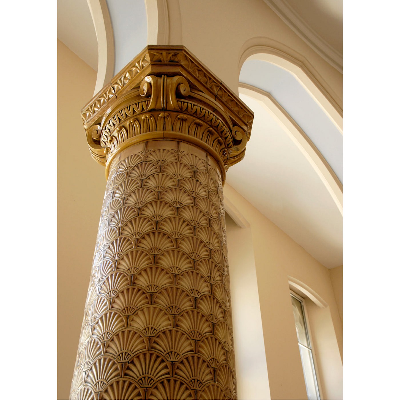 A further example of attention to key details is the Victoria Gallery and Museum, a refurbishment and retrofit project working within the confines of a beautiful protected Victorian structure. A key detail salvaged and restored is the large internal pillars, intricately detailed with a scallop pattern wrapping the main body. These elements are at the mercy of early project decisions and could easily be sacrificed to reduce budgets or speed up construction programmes. However, the benefit of celebrating and respecting such key components is at the heart of restoration, and its importance cannot be underestimated. (Fig. 6 and 7)