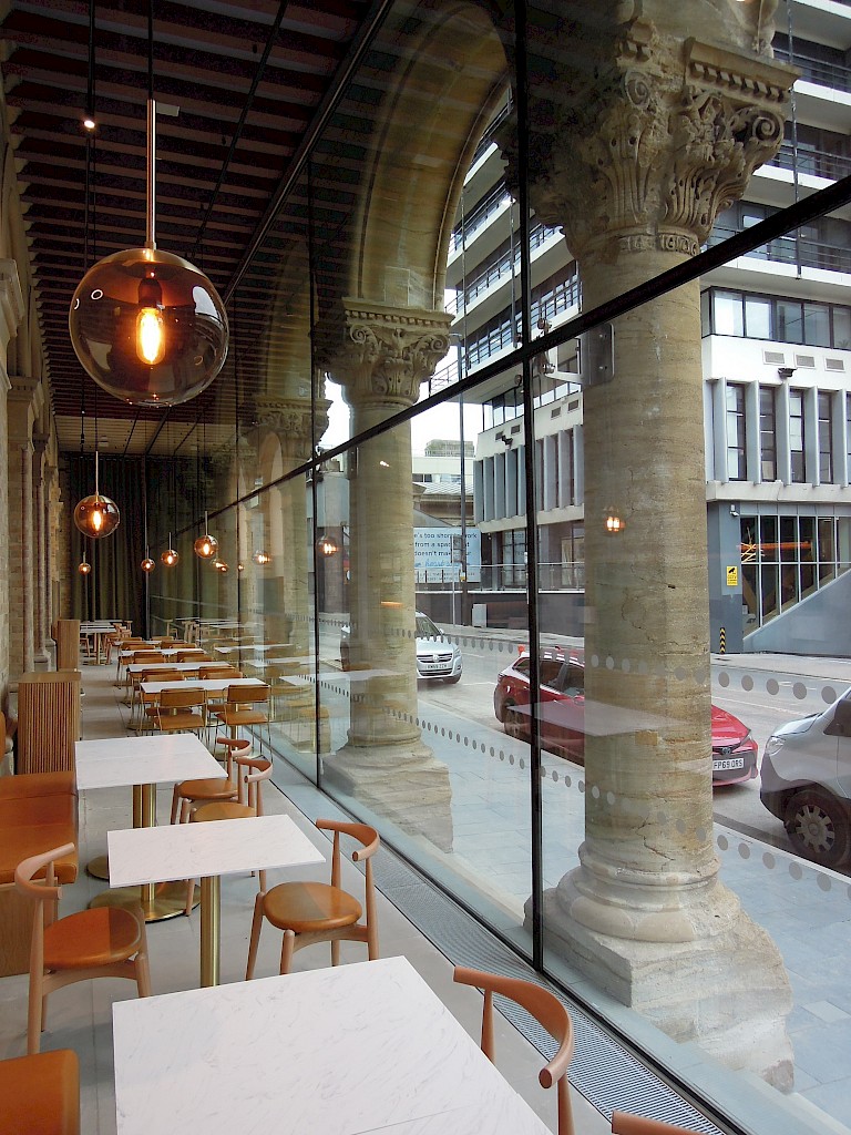 10. Facade windows have been reinstated to naturally light the Lantern Hall and a Linda Brothwell sculpture delineates the alignment of the long lost original balustrade.