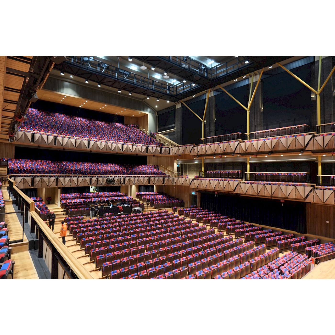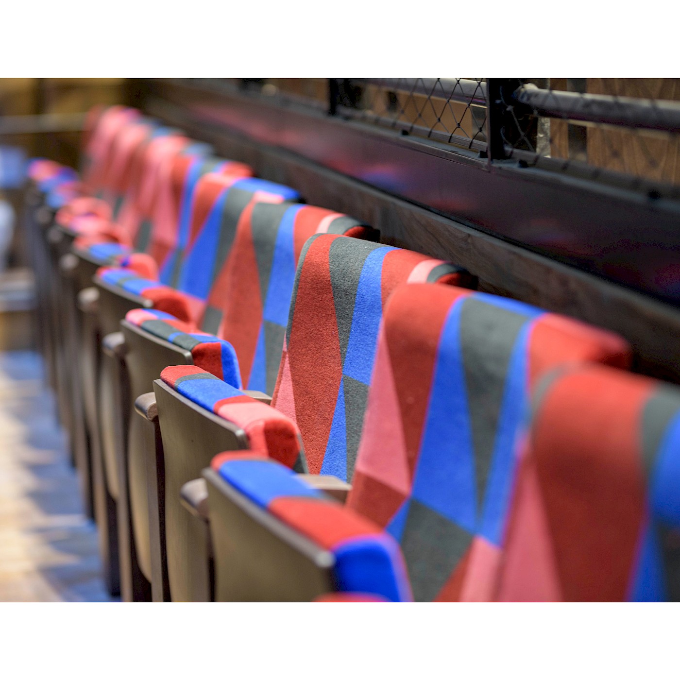 Rana has collaborated with Bristol-based fabric designers and textile trend consultancy Dash & Miller. Rana created bespoke textiles to enhance both main auditoriums through massive tapestry-esque suspended surfaces and bespoke upholstery for the auditorium seats.