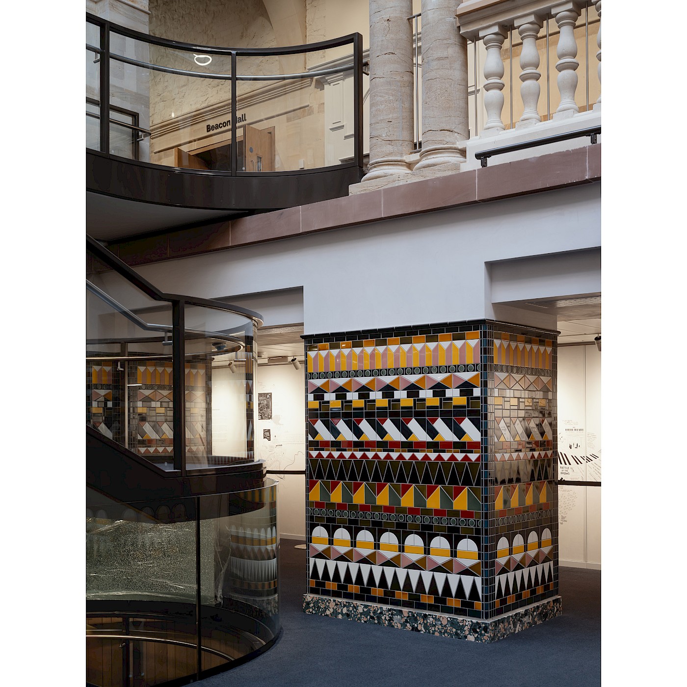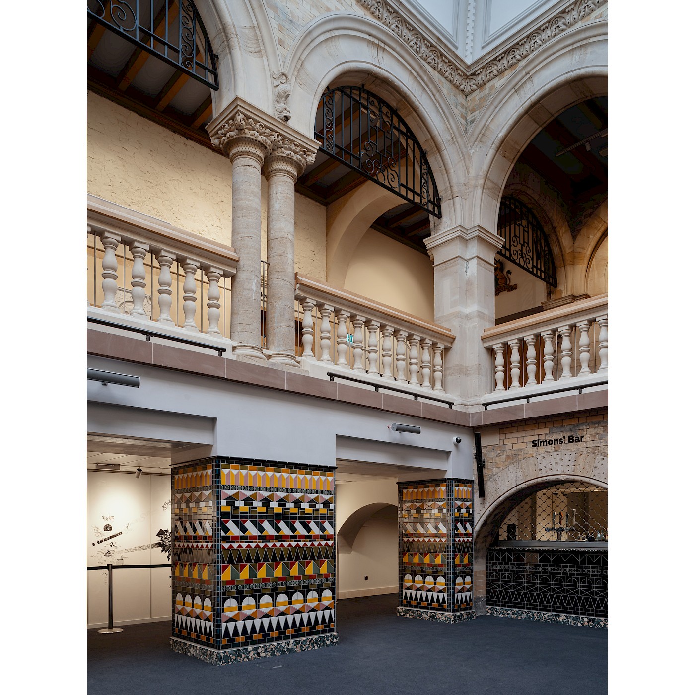 Giles Round: “Following research into the history of the building and the extraordinary architecture of Bristol, specifically the Bristol Byzantine, the design references the polychromatic decoration used on the façade. It is in part a portrait of the building itself.”