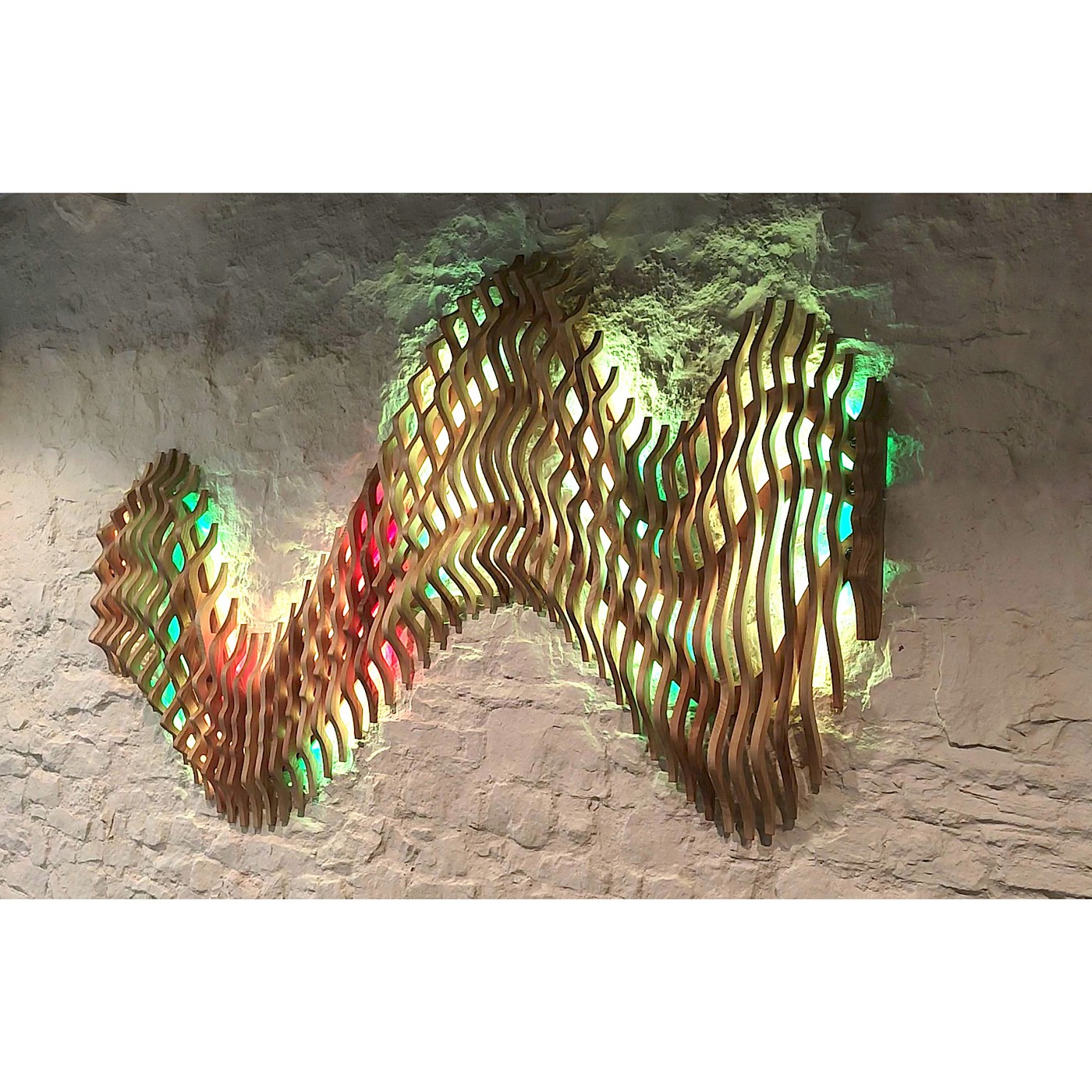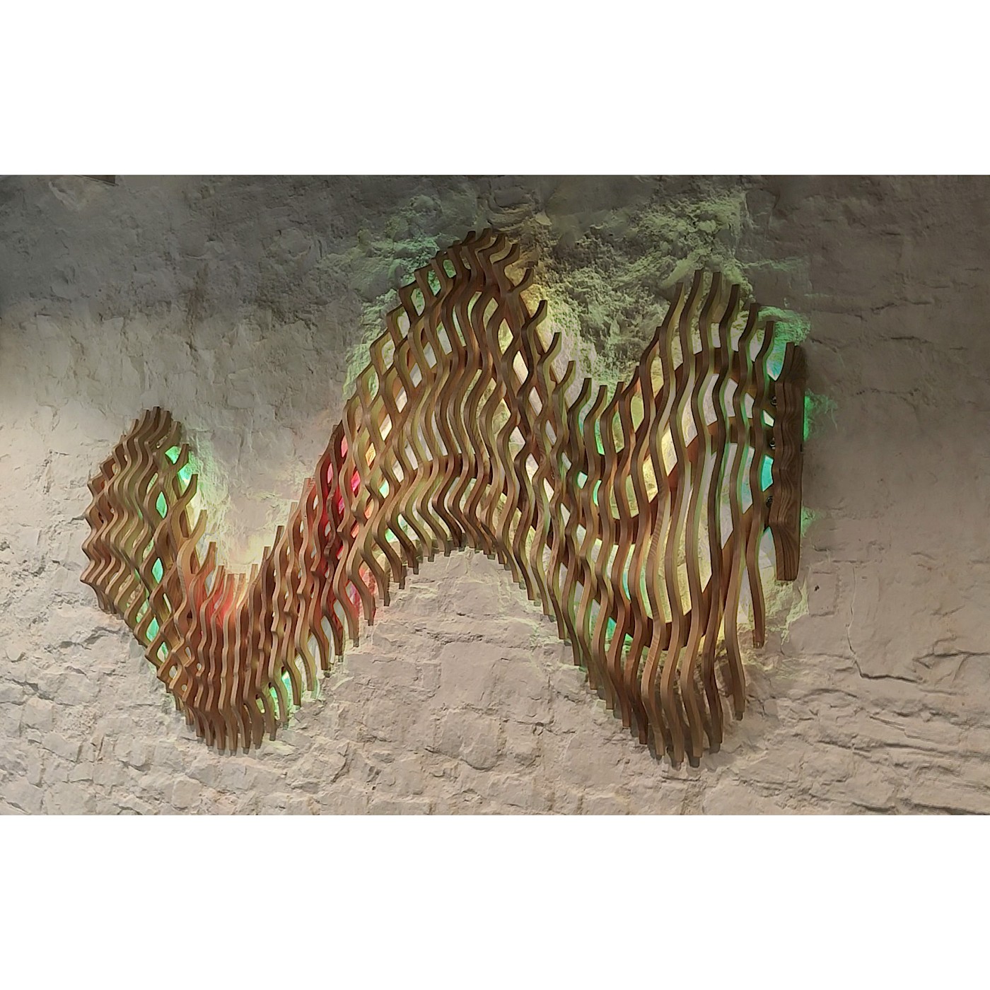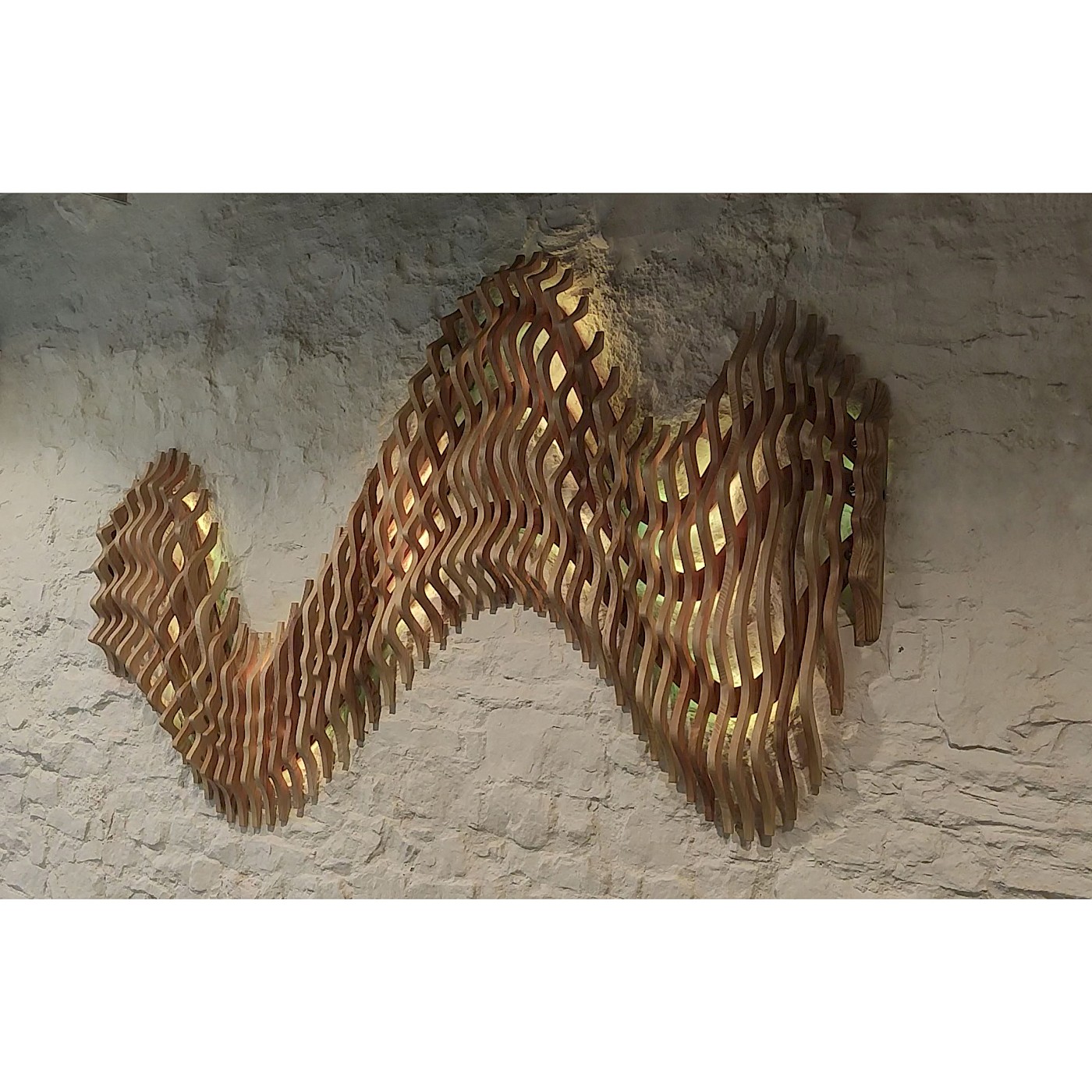 For the new cellar space, neurodivergent artist Frankie Boyle has created Convergence; an undulating sculpture of ash wood ribs that resemble a warped keyframe inside a piano. This artwork is a homage to the music creation and innovation that has taken place in the building for over 150 years.