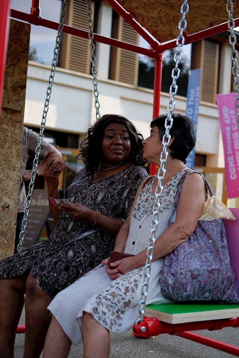 Last Friday night, IC's studio event took place at Hammersmith United Charity’s 400th birthday bash. Working with artist and PhD student Carolyn Defrin, we designed and built a swing to encourage strangers to strike up conversation, find out a bit more about each other and discover some common ground. We came up with questions such as ‘find one thing you have in common’ and ‘what has been your favourite age’.