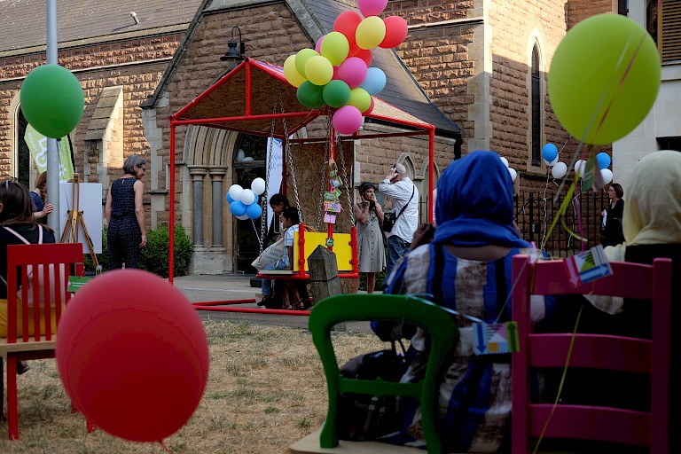 The event was held at St Paul’s church in Hammersmith and furniture upcycling charity Petit Miracles created brightly coloured benches out of donated furniture.