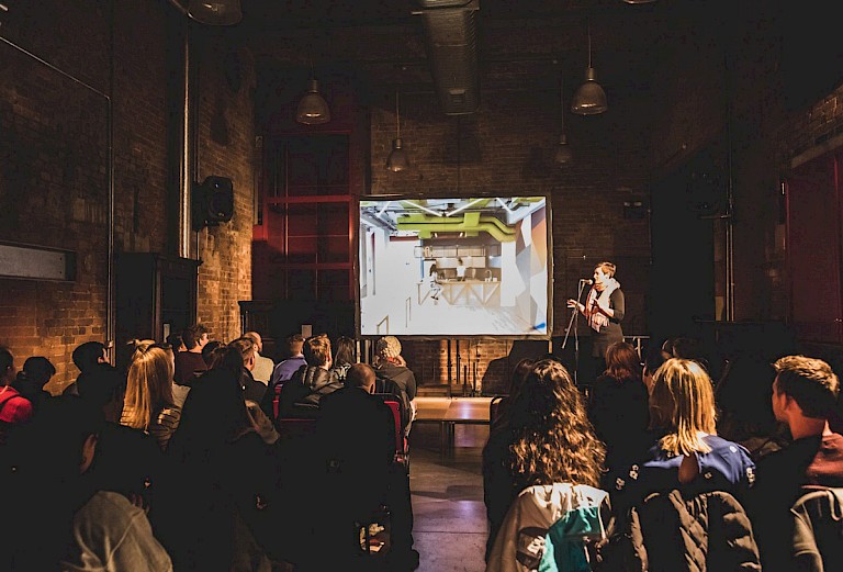 Spoken word artist and comedian Fat Roland embraced the format and gave us a hugely entertaining history of the life of Mancunian author Anthony Burgess. There were also stories of finding inspiration in bins, and architecture in various forms – from a railway bridge (quite literally making connections) to global collaborative creativity.