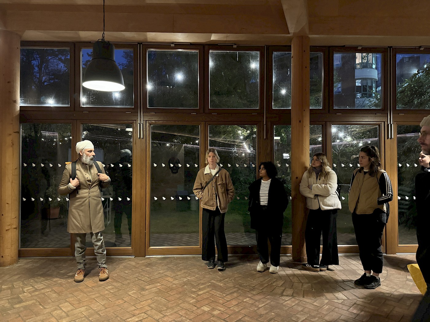 Gurmeet Sian and Louise Gates, the garden facilities manager, kindly showed us around the garden and explained the aims of the building. Gurmeet poetically described how the "garden walls" act as a metaphor for enclosure, secrecy, and thresholds. As we entered the building, the city seemed to recede behind us. It felt as though we had walked through a portal into another world, with the hustle and bustle of the streets fading out of earshot.