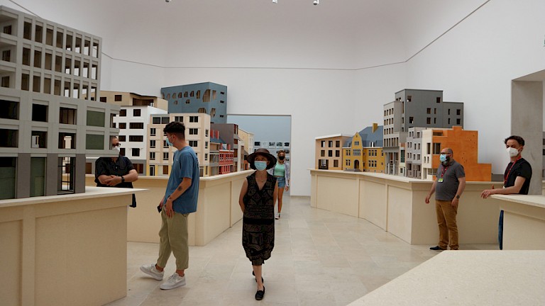 - Belgian pavilion, Composite Presence: a “capriccio” of built and unbuilt buildings that won national competitions, arranged in a fictitious urban layout (pictured below) – all 1:15 scale.