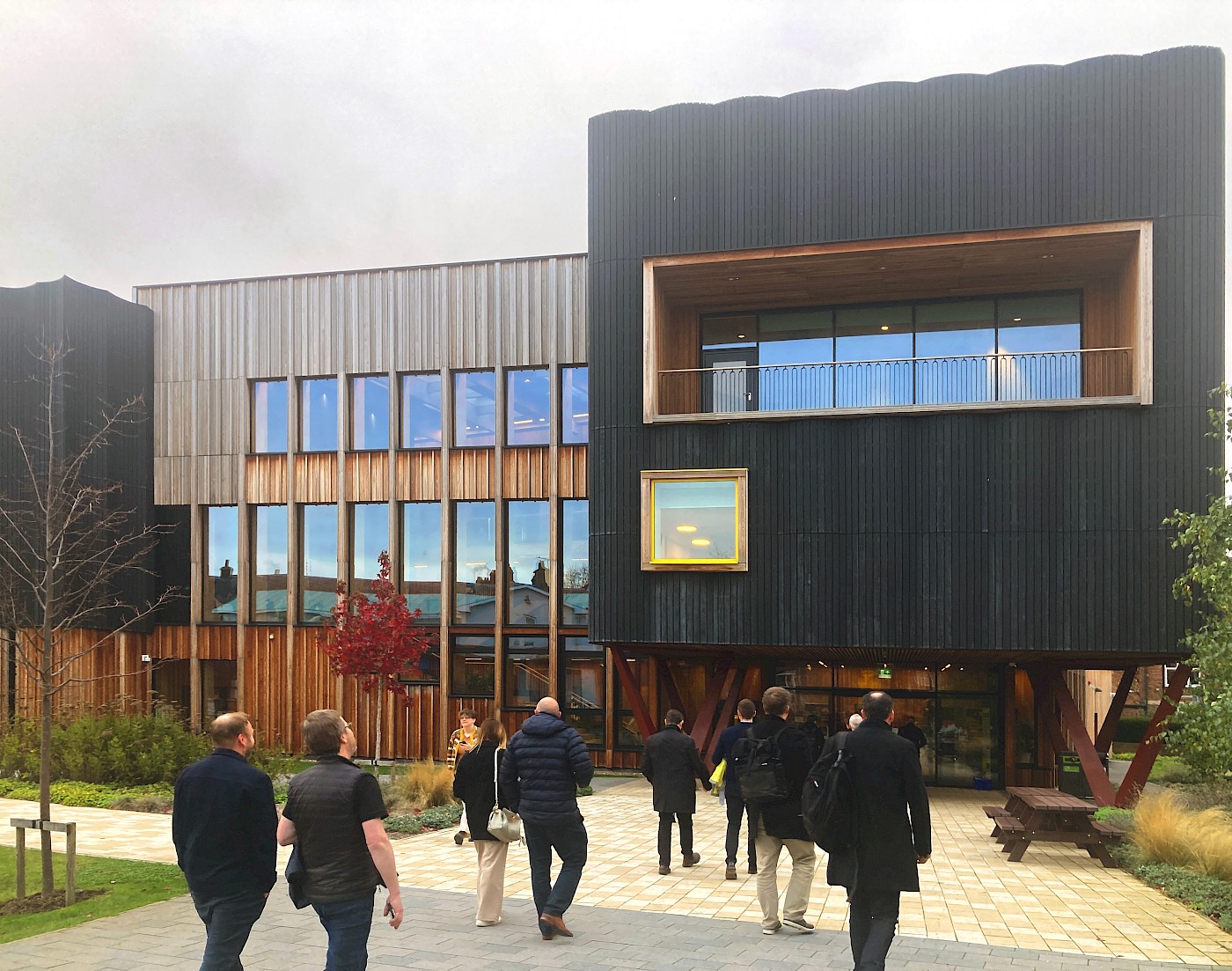 The last key design move came when Tate + Co walked us around the building. Their development of the form and external appearance came under the term they coined as ‘super texture’. Whilst not fully defined during our visit, it was quite clear they were referring to the expression of large-scale profiles and surface shape on the building facades. From the rippling concave and convex forms of the black timber on the front elevation and the spiking beaks on the rear.