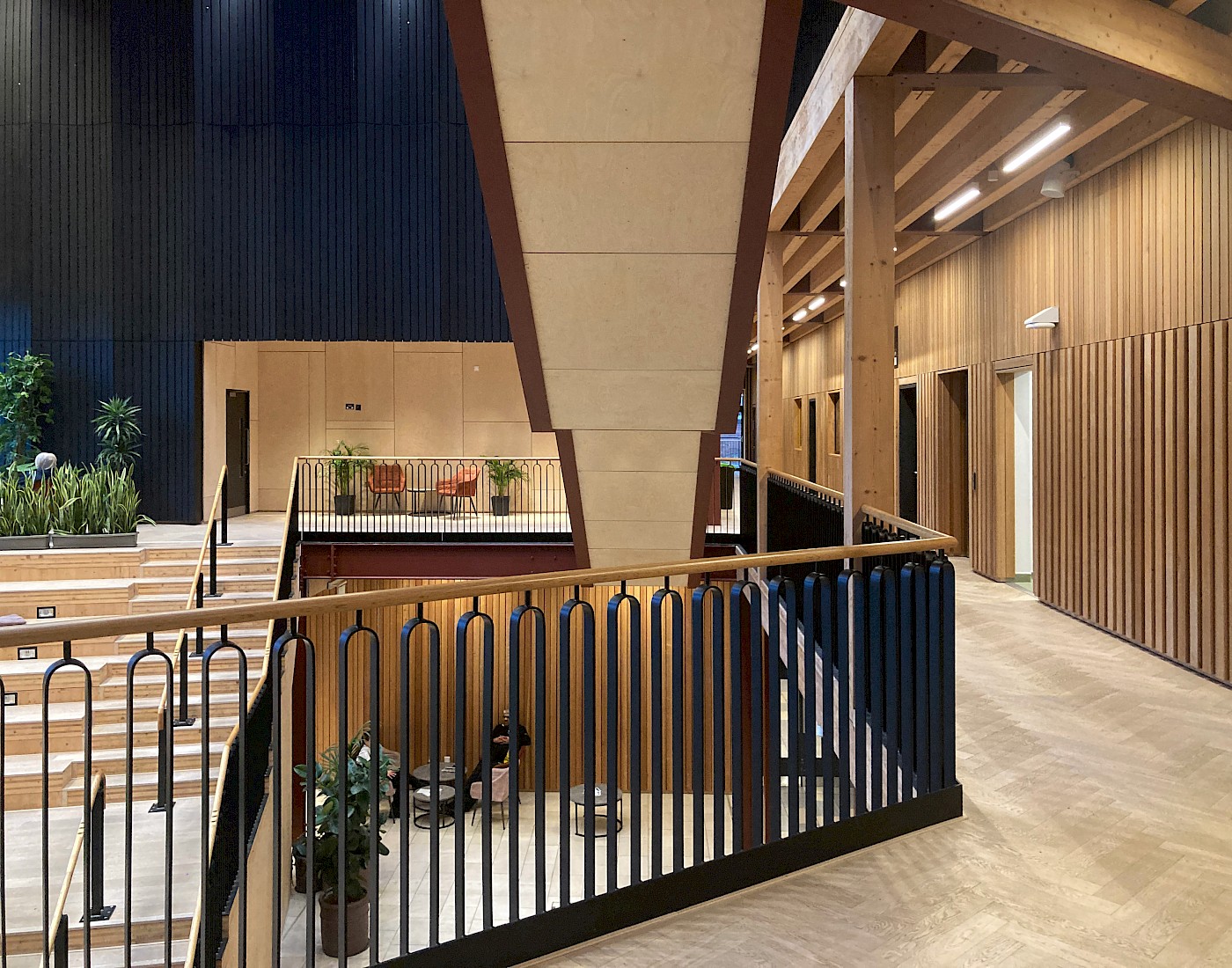 It is commendable that they have managed to create a building for a large institution that employs so much timber internally and externally, and as both a finish and structure. This material choice humanises the building as you approach and gives the entrance and atrium a warmth; allowing the volume to avoid feeling clinical or institutional.