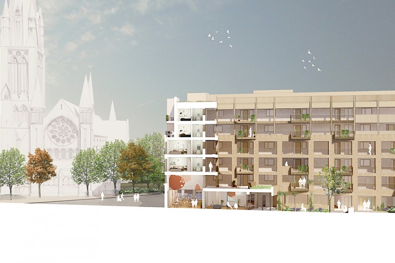 The scheme is linked to separate future plans to transform what is currently a rear service entrance into an active frontage which will define a new civic space to be shared by the church and the entrance to the extra care apartments and new public café. This space will tie in to proposals which are being developed across the road as part of the South Kilburn Masterplan.