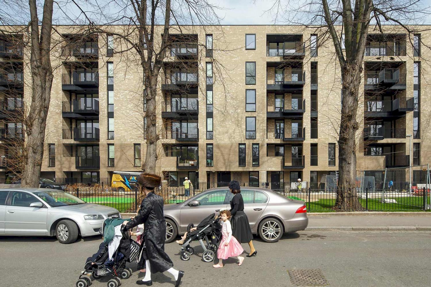 This bespoke approach continues inside the building. The private apartments are open plan with one or two bedrooms to suit first time buyers. Homes for Orthodox Jewish families have at least three bedrooms and include extra sinks and external space needed for religious festivals. Many of the homes for older people follow HAPPI design recommendations, with flexible layouts to help residents move around more easily.