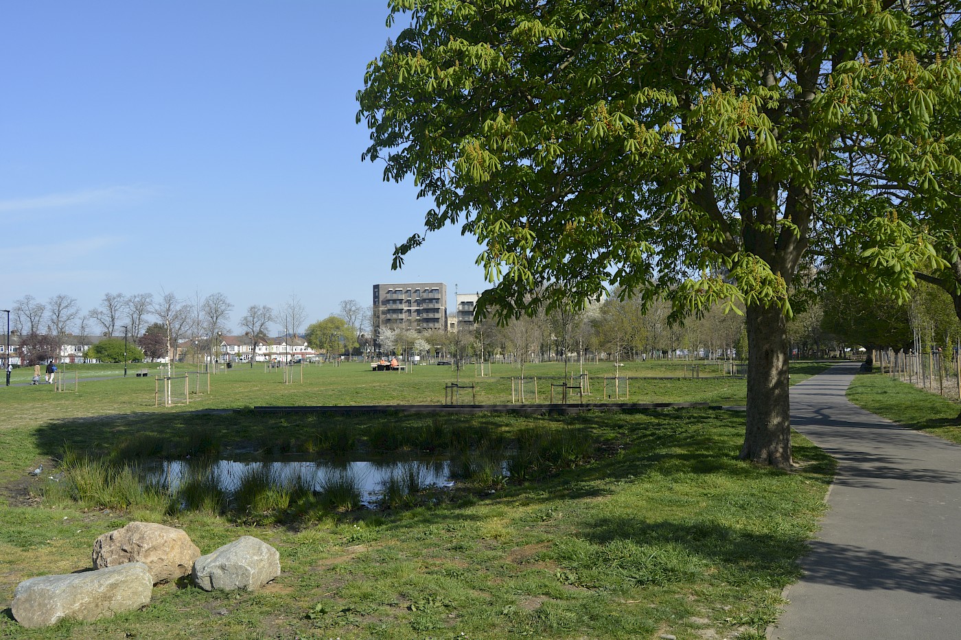 Down Lane Park is a well-loved greenspace at the heart of a rapidly changing community in Tottenham Hale. It is a park of two distinct halves which have differing but established landscape characters.