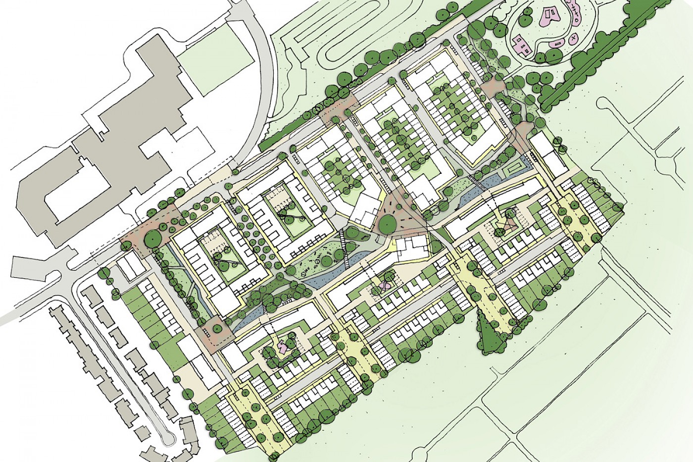 Landscape masterplan showing new extensive play network and areas for informal social interaction