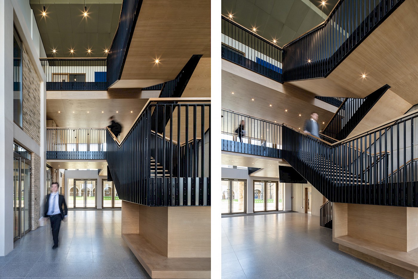 A triple height atrium creates a focal point for the whole school and provides a visual and physical link between the quad and playing fields