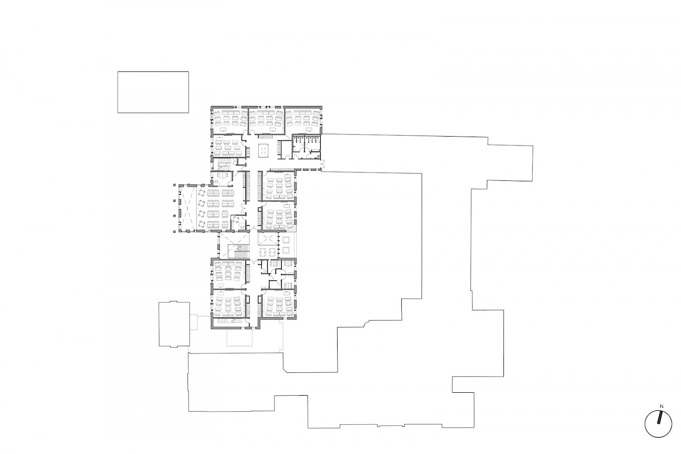 The quad has been re-landscaped with paving and bonded gravel defining the colonnade and entry points. The central lawn has been raised to create seating areas around the perimeter; add to the classical aesthetic and emphasise the heart of the school. A new landscaped setting to the west improves access to the playing fields and wider estate and knits the new buildings into their setting. The new wellbeing centre, clad in black stained timber, also now sits as a modest pavilion in the new landscape.