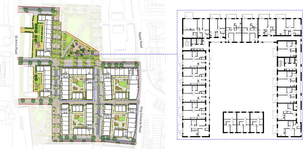 LBBD ran a competition to find a team who could provide the vision for a new masterplan, architecture and landscape on the site. Following our work on the Ocean Estate, we were approached by East Thames Housing Group (ETHG) to develop proposals with Allies + Morrison on board as masterplanners.