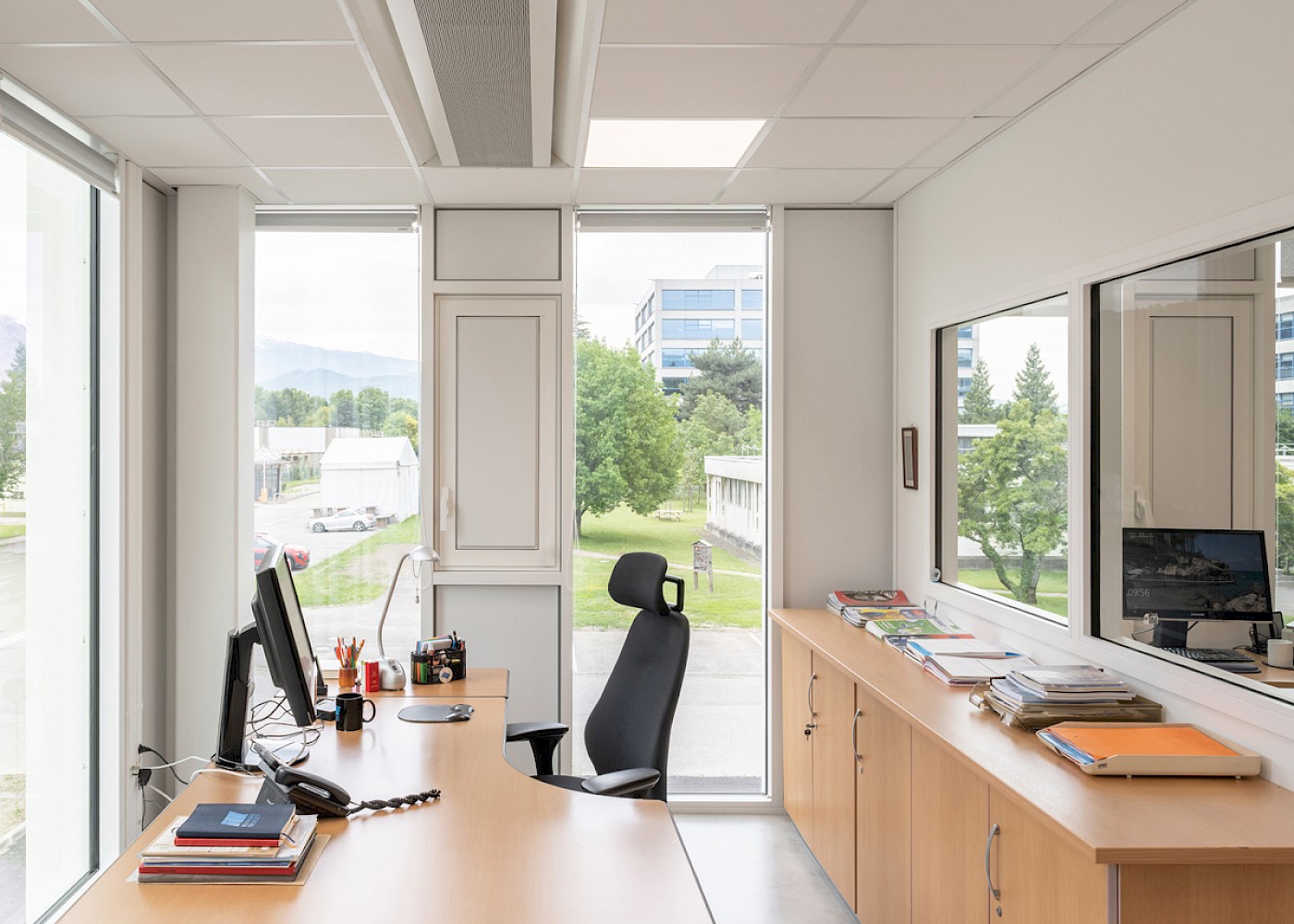 The perforated façade and clerestory windows provide the scientists with light and privacy