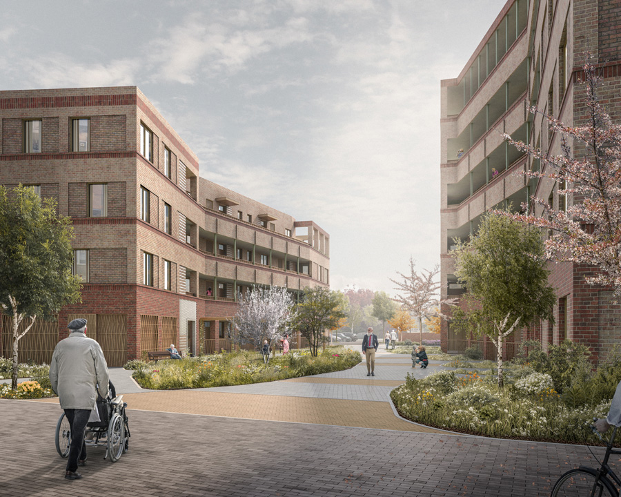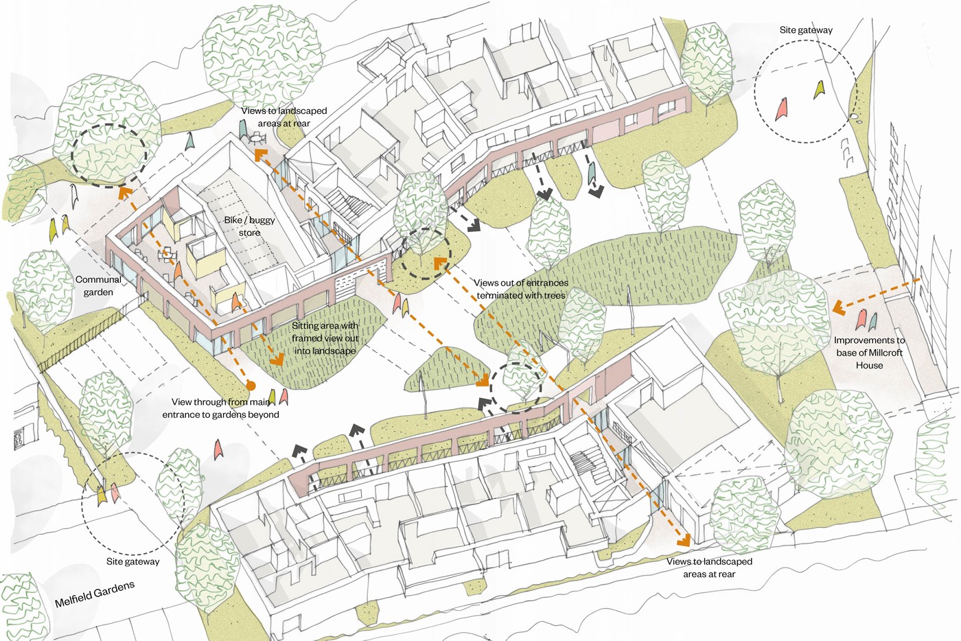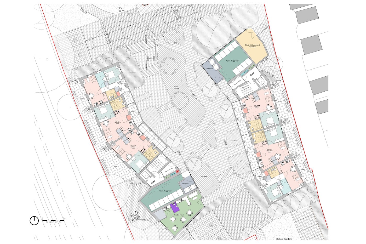Melfield Gardens will provide 30 affordable, independent living homes for people aged 55+, and two, four-bedroom homes for postgraduate students. In return for being ‘good neighbours’, the students will be charged a sub-market rent. Each will spend time assisting older residents, offering company or participating in recreational activities in the communal spaces, to help combat loneliness.