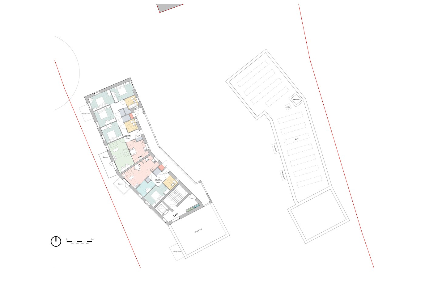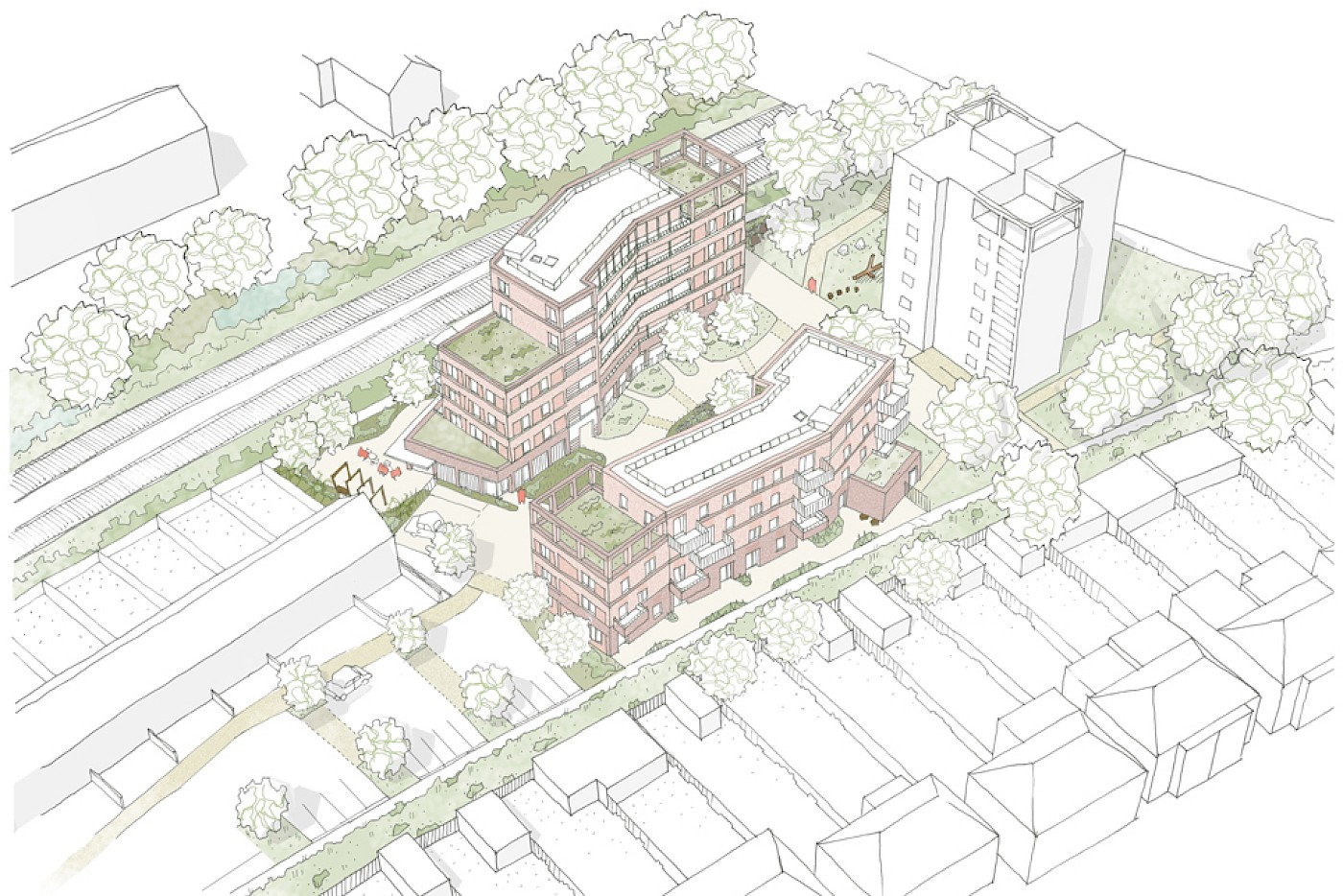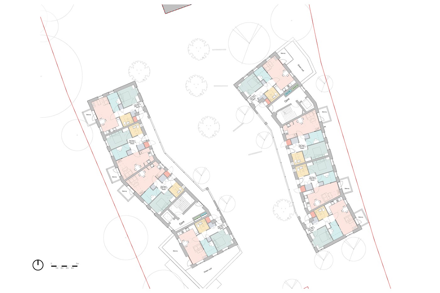 An intergenerational housing scheme for older people and students, designed to a Passivhaus standard.