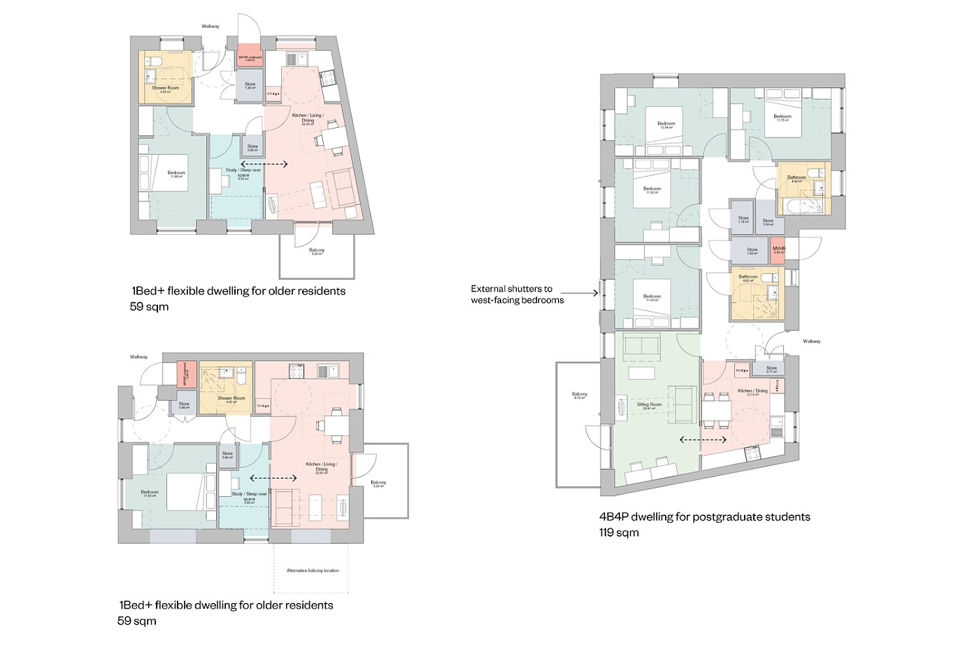 This highly sustainable intergenerational living scheme provides housing for older people and students