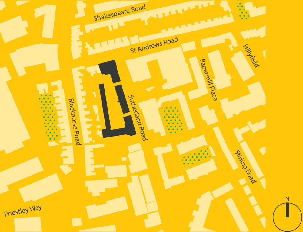 Sutherland Road is a new community in Walthamstow, east London, previously occupied by semi-derelict industrial buildings. Following the residential-led redevelopment of other nearby sites, there was an opportunity to continue the regeneration of the area and better serve local residents.