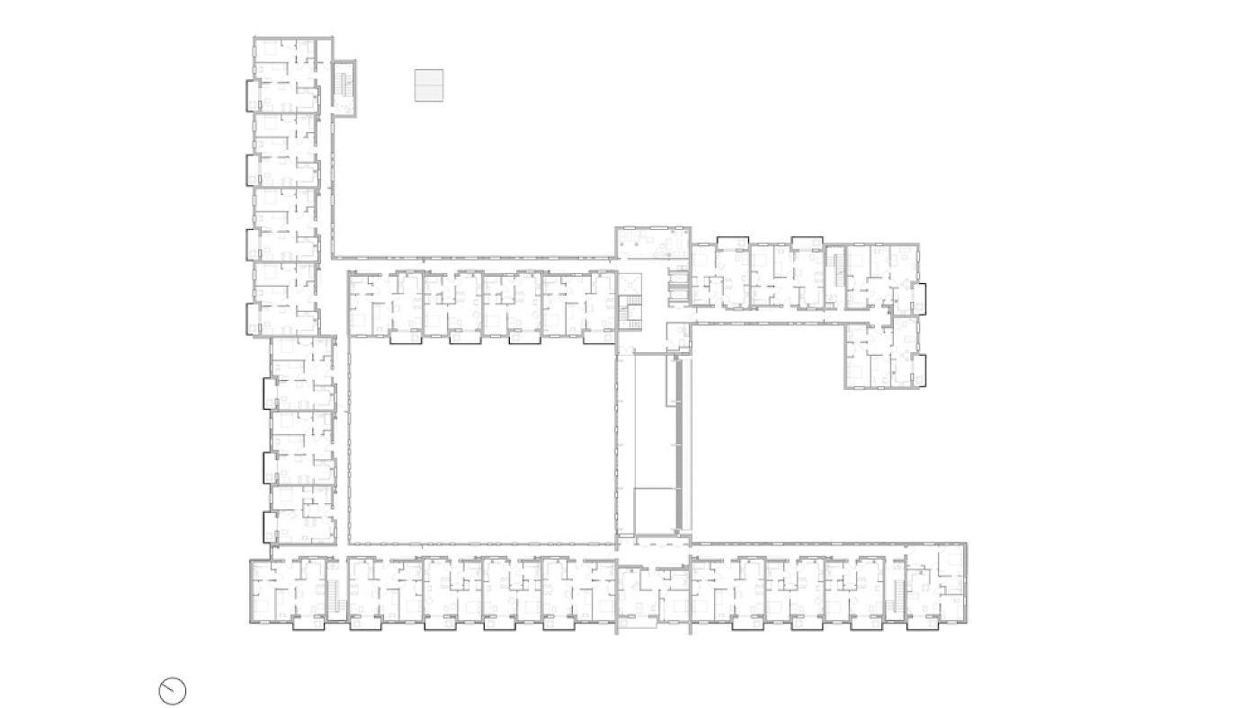 Our goal was to promote communality in the residential areas. This was reflected in numerous design decisions, such as balconies that look over the courtyards and walking routes, and kitchen windows that face onto walkways so that neighbours see each other while passing by. Seating in the corridors is well-used and supports a convivial atmosphere, while helping to tackle loneliness.
