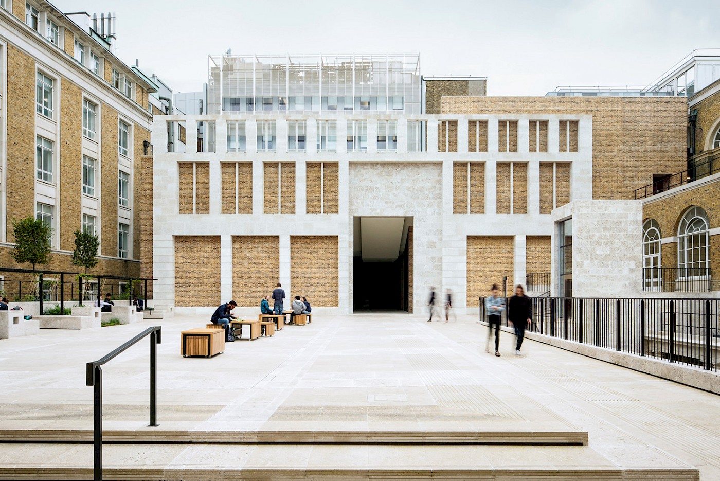 The terrace opens up a new east-west route to improve accessibility across the campus, in particular to the Bloomsbury Theatre and new Student Centre.