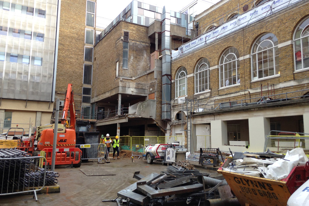 The existing service yard had become unsightly with single storey buildings, skips and containers added over time. It was also overtly overlooked by a number of important university buildings. Our challenge was to connect these disparate elements with one cohesive design solution – all the more problematic considering the Wilkins Building is Grade I listed. Quite apart from the creation of the new terrace, there were a number of practical issues to be solved: providing good access and maintaining building services to the surrounding buildings.