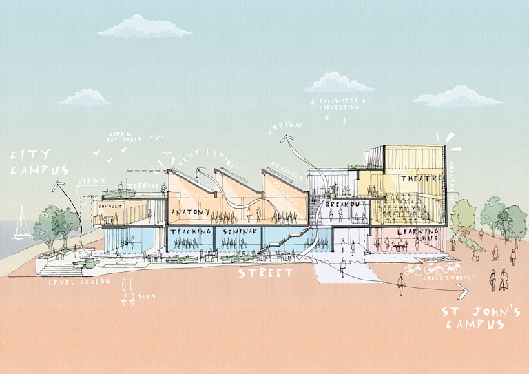 This section shows our proposals to refurbish Berrows House, a 1965 Brutalist building which was purpose-built to house the Worcester News. The building was recently acquired by the University of Worcester to provide a varying array of flexible and adaptable teaching spaces.