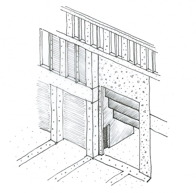 This sketch is of our so-called 'fourth façade' in UCL's Wilkins Terrace, which being made of Portland Stone, works to tie all of the neighbouring historic buildings together in the new courtyard. It also cleverly conceals the existing buildings' services.